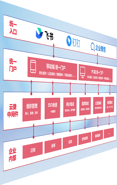 对协作平台提供支持服务,,支持企业应用与协作平台对接,,包含组织同步、、消息集成、、、待办集成等。。支持目前主流的协作平台:钉钉、、、企微和飞书。。。。